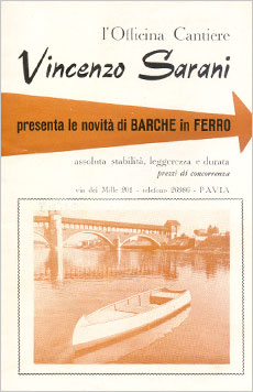 1922, Pavia - Vincenzo Sarani, known in the city for the construction of numerous works on wrought iron, which still today embellish the historical buildings of the center, begins production of the boats in iron. In a few years, this will become the main work activity.