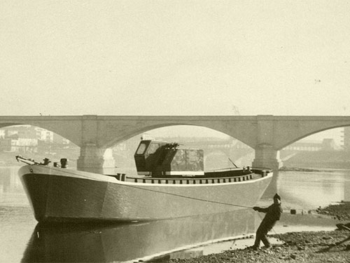 1948, Pavia - A slipway is built on Ticino river to launch the first ships designated to the river excavating activities.