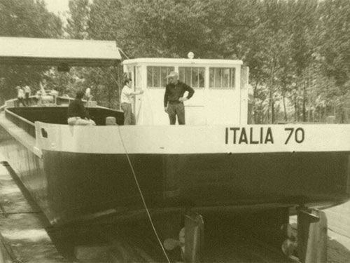 The first boat launched on Po, 1970