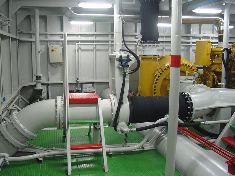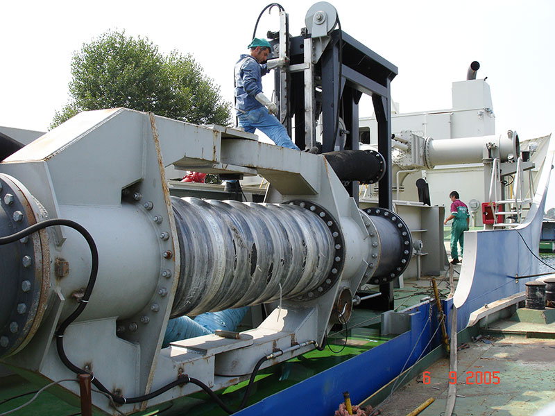 The hopper dredgers (used in internal waters or limited floors) are generally equipped with hydraulic propulsion groups which can adjust the propeller’s position according to the draft of the ship; no ballast is to be used and the dredger is kept perfectly in horizontal position. As a rough indication, a dredger with capacity of 500 mc has only 80 cm draft when empty and 2.4 meters at full load.